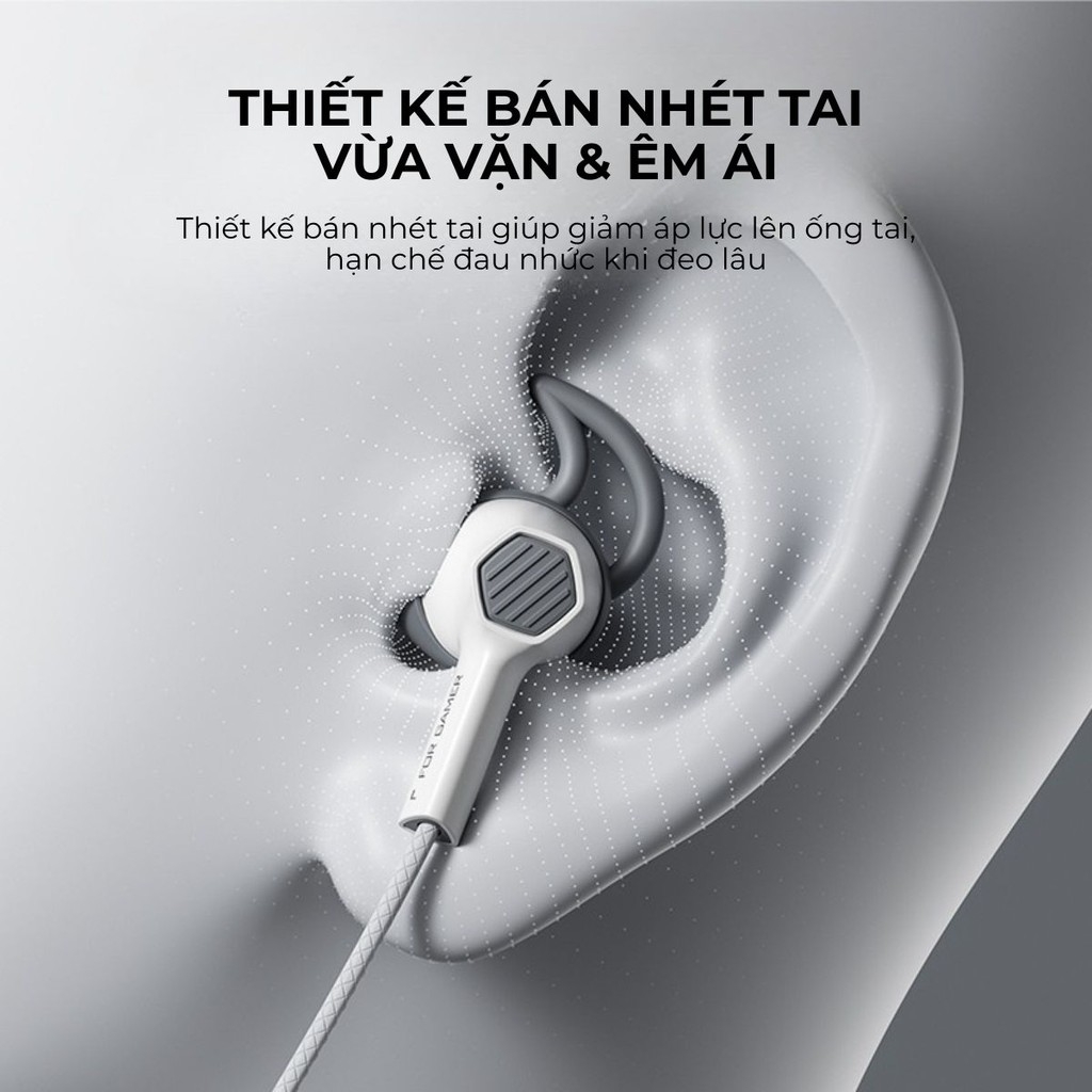 ✅ Tai nghe có kiểu dáng gọn nhẹ, đệm tai mềm mại, mang lại cảm giác dễ chịu khi sử dụng trong thời gian dài